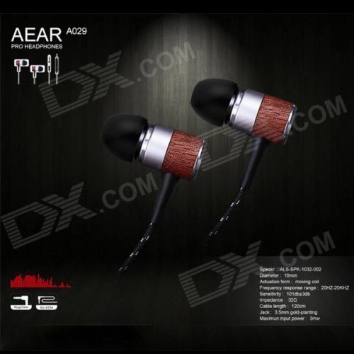 AEAR D00267 Zinc Alloy + Wood Pro Stereo In-Ear Earphones w/ Mic. / Remote - Black + Silver