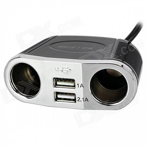 BESTEK MRS152UV Dual USB Dual Cigarette Lighter Charging Adapter Socket w/ Car Power Charger - Black