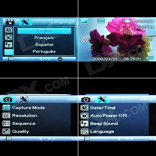 Video Resolution 1080FHD 1920 x 1080 / 720P 1280 x 720 / WVGA 848 x 480 / VGA 640 x 480
