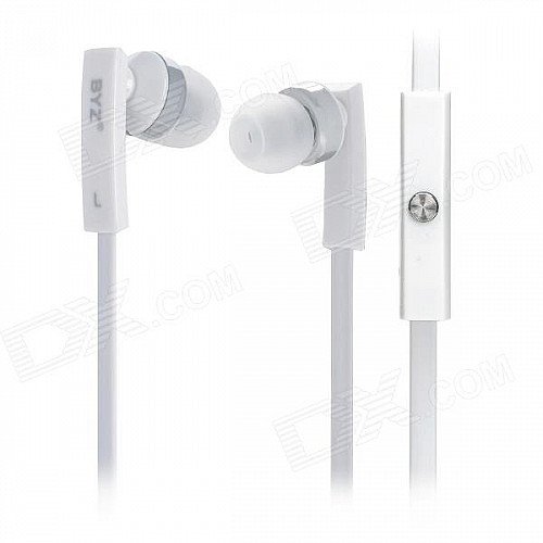 BYZ-S500 Stylish Flat Cable Earphone w/ Microphone - White + Silver (3.5MM Plug)