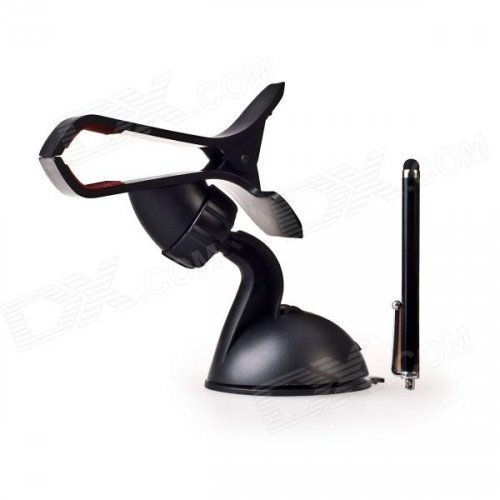 360° Rotatable Car Mount Bracket Holder Suction Cup w/ Capacitive Stylus Pen for Phone GPS - Black