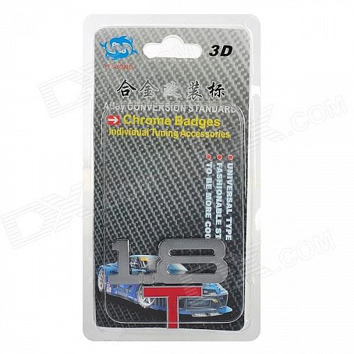 - Model: D12092805X - Color: Silver + Red - Material: Chrome alloy - Special design, 1.8 T style - Resistant to water, oil, car shampoo etc. - Easy installation, just peel off 3M tape and stick to any smooth surface - Great decoration sticker for car