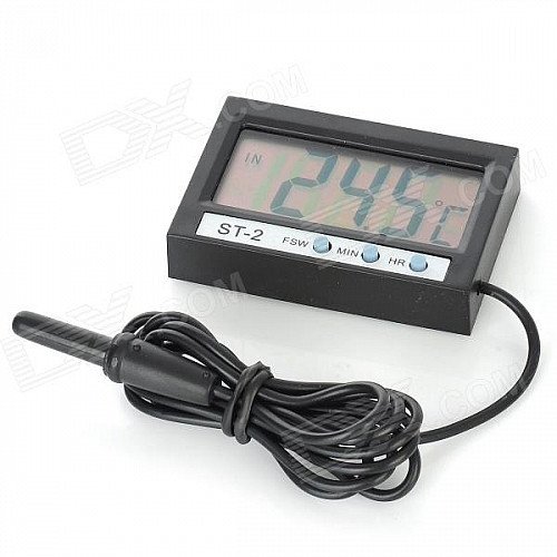 9D06-ST-2 2.0" LCD Digital Dual-Way Vehicle Thermometer w/ Sensors / Clock - Black (1 x LR44)