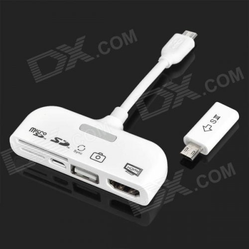 5-in-1 Micro USB MHL to HDMI Cable w/ OTG Camera Connection Kit / 11-pin Micro USB Adapter - White