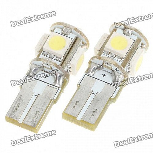 BMW T10 1W 5x5050 SMD LED 6500K 60-Lumen White Light Bulbs for Car (Pair/DC 12V)