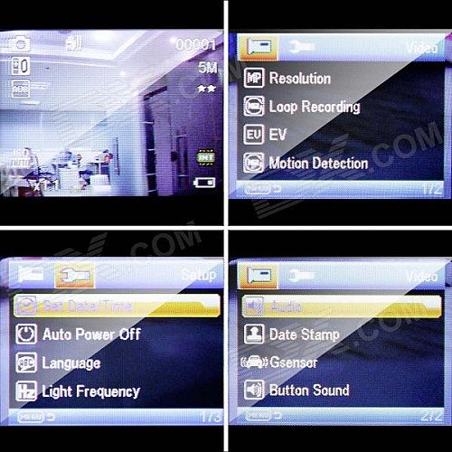 Video Resolution 1080FHD 1920 x 1080 / 1080P 1440 x 1080 / 720P 1280 x 720 / WVGA 848 x 480 / VGA 640 x 480 / QVGA 320 x 240