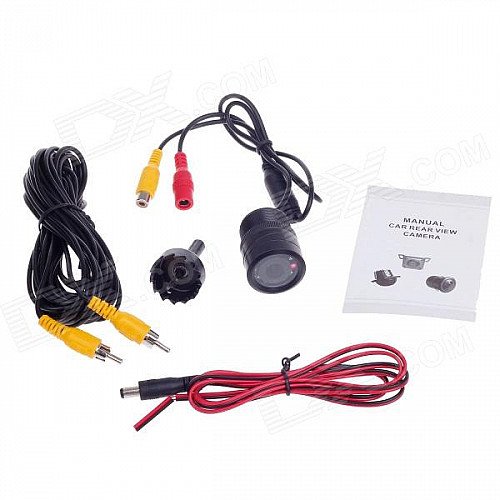 Packing List 1 x Car Rear View Camera (63.2cm-cable)1 x Video cable (598cm length)1 x Power cable (117cm length)1 x Hole saw (28mm)1 x English user manual