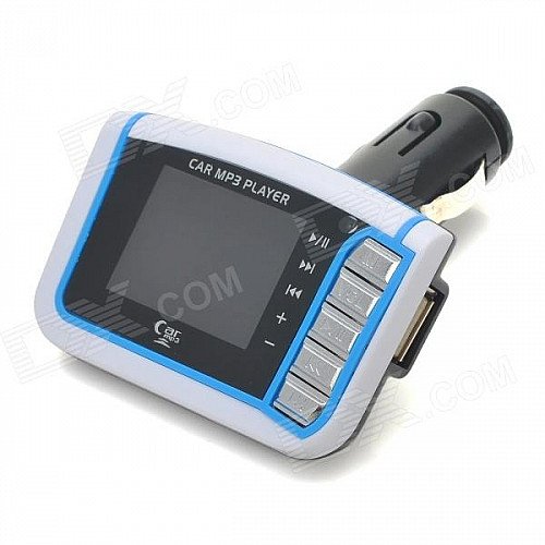 1.4" LCD Car FM Transmitter MP3 Player w/ Remote Controller - White + Blue + Black