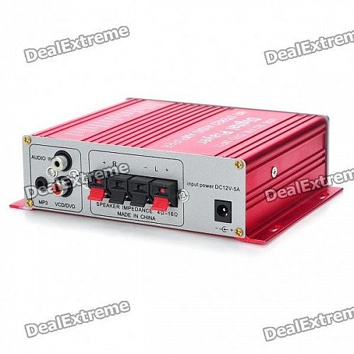 160W Hi-Fi Stereo Amplifier MP3 Player w/ SD/USB for Car/Motorcycle - Red + Silver (12V)