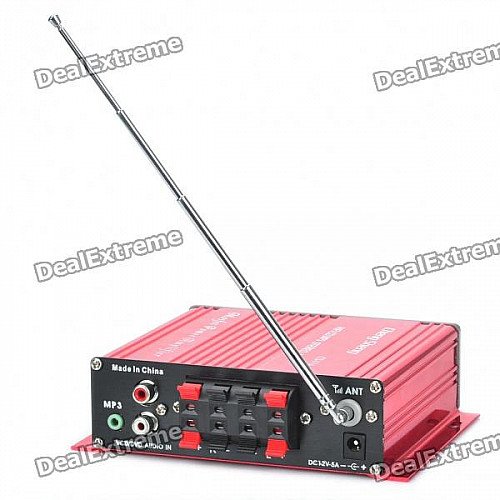 1.8" LED 80W Hi-Fi Stereo Amplifier MP3 Player w/ FM / SD/ USB for Car / Motorcycle - Red + Silver