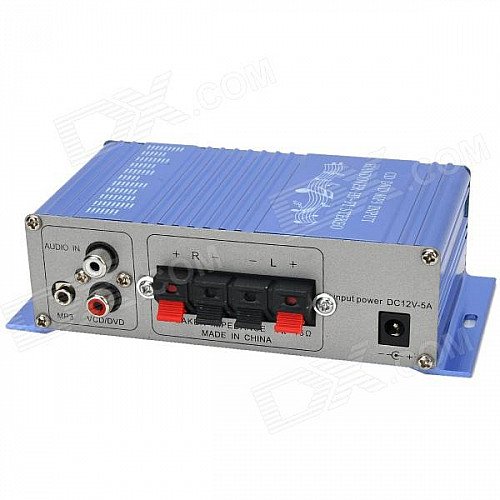 2-Channel Hi-Fi Car Stereo Audio Amplifier w/ MP3 / DVD / VCD Output - Cornflower Blue + Silver