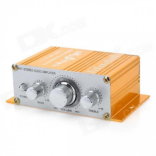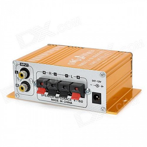 Aluminum Alloy 2-Channel 100W Audio Hi-Fi Stereo Amplifier for Car - Golden (DC 12V)