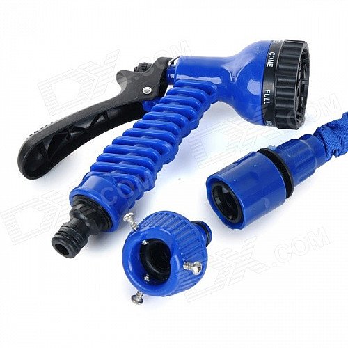 7.5m Expandable Hose & Nozzle Spray Head Water Gun Set for Car Wash / Garden Watering - Blue