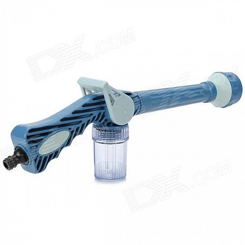The little kettle under water gun can hold car shampoo, Foliar-fertilizer, insecticidem, etc; Adjust white switch, can choose spray water, spray foam functions, etc; Rotate the head of water gun, can deliver 8 different spray patterns; Ideal for garden watering and vehicle cleaning etc.