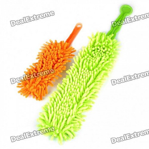 Soft Microfiber Chenille Car Cleaning Dusters - Orange + Green (2-Piece Pack)