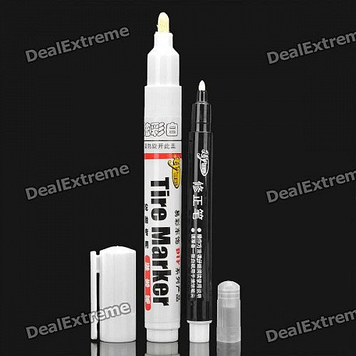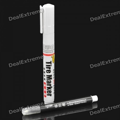 - Model: MC-006 - Color: White - Material: synthetic resin + pigment + solvent - Customize your tires with this paint pen - Make your car tires look cool and special - Great for car, motorcycle, truck, etc. - Comes with a tire marker and a correction pen