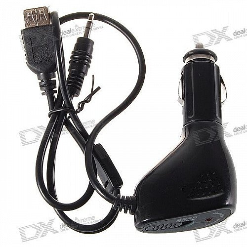 Car Charger Style FM Transmitter with Charger Function for All USB/3.5mm Gadgets