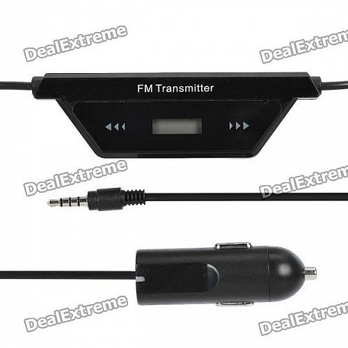 Car Cigarette Powered 0.7" LCD FM Transmitter with Car Charger for Smart Phone / MP3 / MP4 - Black