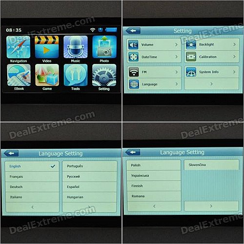 - Default features: GPS, MP3 music playback, photo album, e-Book viewer, built-in games, MP4 video