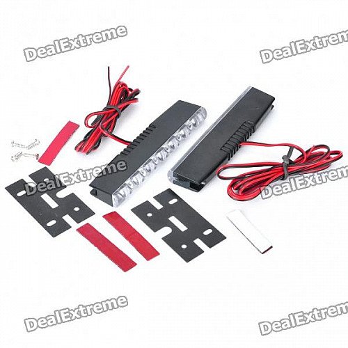 - Model: SE-004 - Color: Silver + Black - Plastic case material - Each LED Lamp contains 6 white LED emitters - Power: 0.5W - DC 12V power supply - Cable length: 114cm - Comes as a pair - Accessories: - 2 x Iron plates - 4 x Adhesive tapes - 4 x Screws