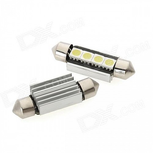 CANBUS Festoon 39mm 1.8W 60lm 4-SMD 5050 LED White Light Car Dome Lamp w/ Heat Sink (12V / 2PCS)