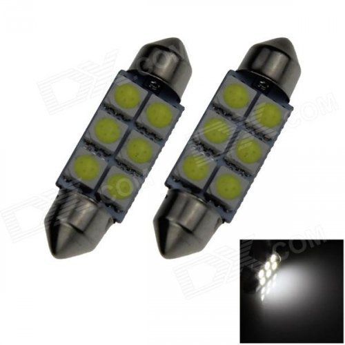 Festoon 39mm 1.2W 100lm 6 x SMD 5050 LED White Light Car Reading / Roof / Dome Lamp - (12V / 2 PCS)