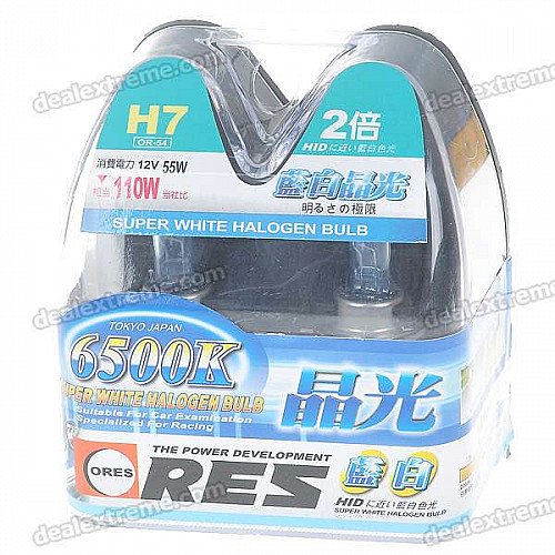 H7 55W 6500K Car White Light Bulbs (Pair/DC 12V)