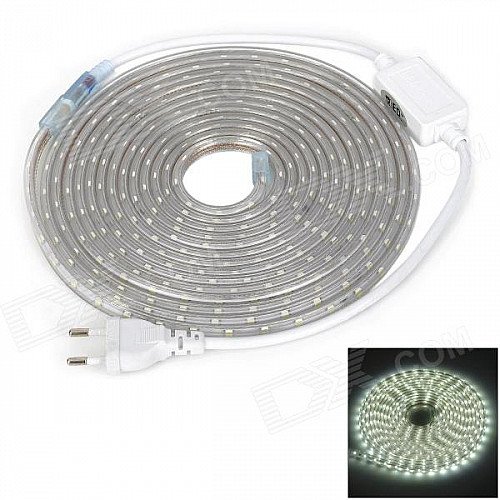 JRLED Waterproof 24W 1000lm 6500K 300-3528 SMD LED White Light Strip - White (AC 220V / 5m)