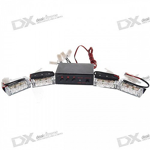 Police Style Car 12V 12-LED Red/Blue Stroboscopic Light with 3-Mode Controller