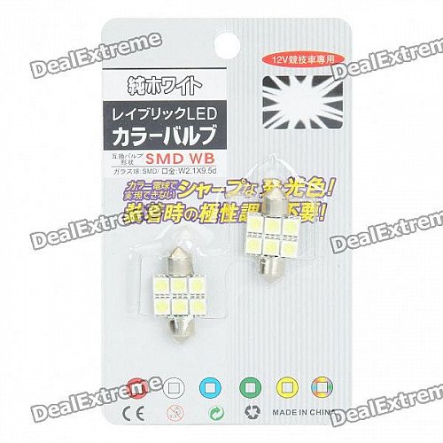 SV85 31mm 0.5W 6500K 65LM 6-SMD LED White Lights for Car (Pair / 12V)