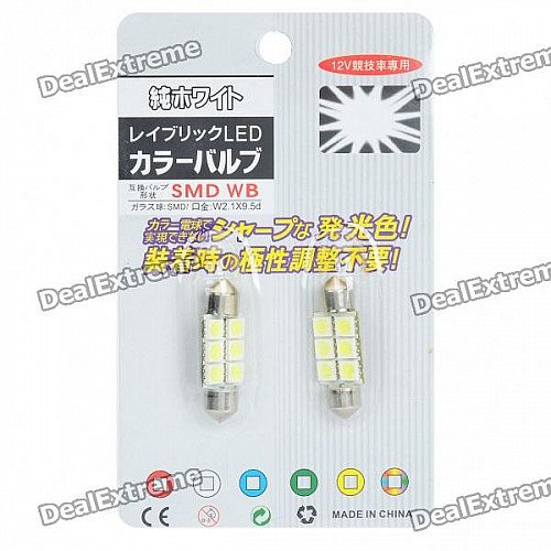 SV85 36mm 0.5W 6500K 65LM 6-SMD LED White Lights for Car (Pair / 12V)