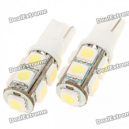 T10 0.84W 9-SMD 5050 LED 170LM 8000K White Light Bulbs for Car (Pair)