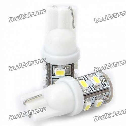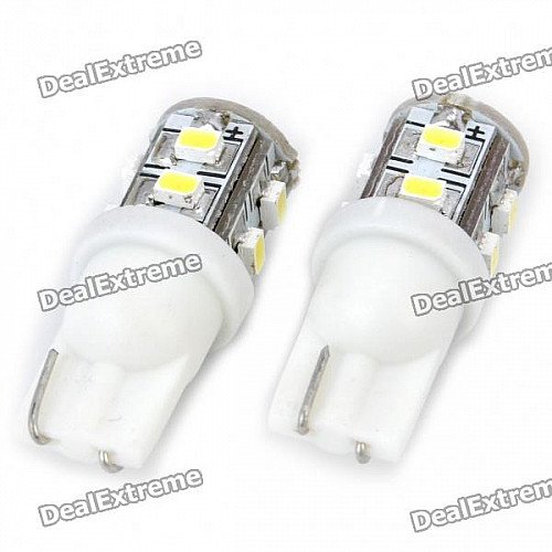 T10 0.8W 55LM 10x3020 SMD LED Car White Light Bulbs (Pair)