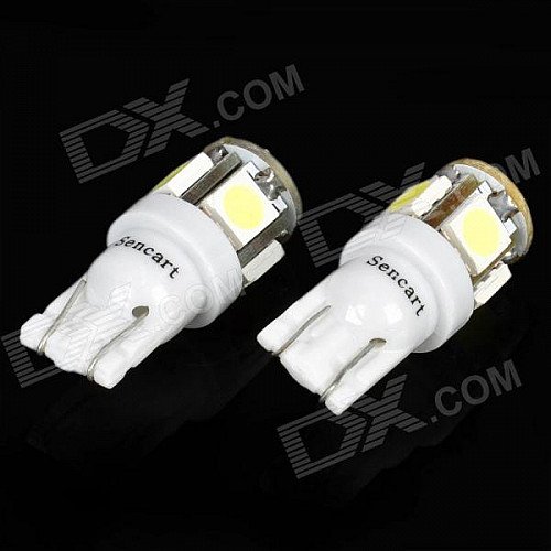 T10 1.2W 6500K 32-Lumen 5-SMD LED Car White Light Bulbs (Pair/DC 12V)