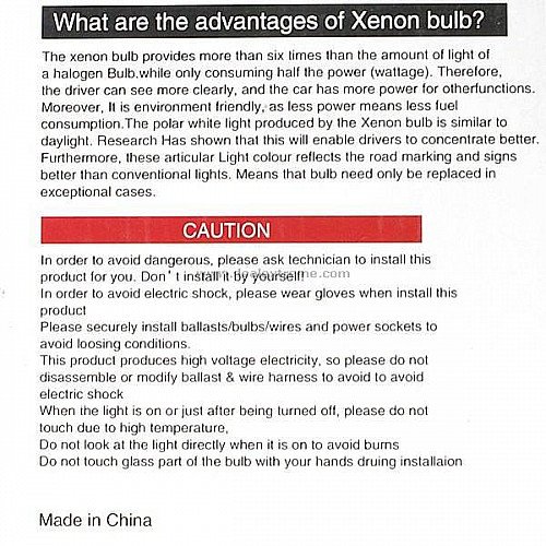 - Dual bulb design in each HID lamp unit (1 HID Xenon bulb and 1 Halogen bulb for low beam)