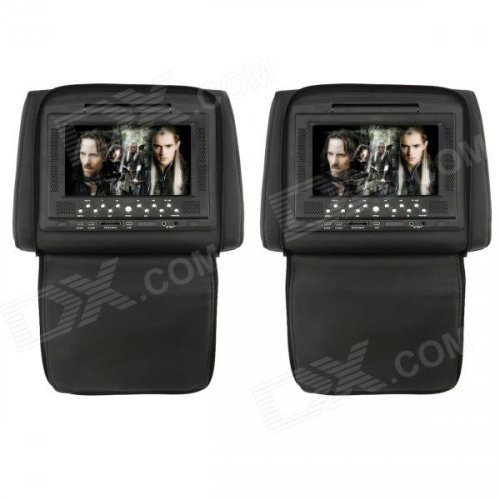 7" LCD Screen Car Headrest DVD Media Player with FM / AV-Out / SD / Game - Black (DC 12V / 2 PCS)
