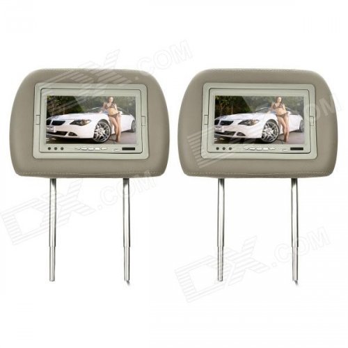 7" LCD Screen Car Headrest Monitor w/ Remote Controller / AV-IN - Grey (2 PCS)