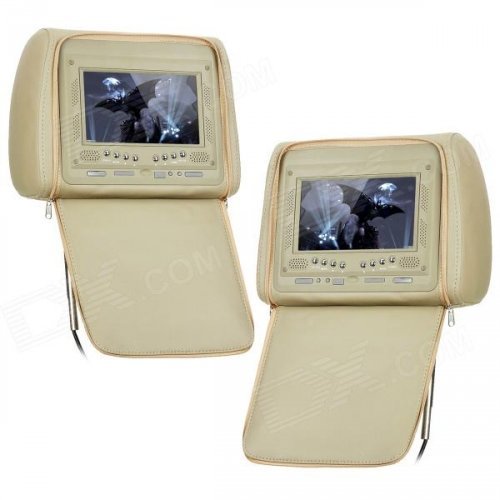 AST7002H-MIS 7" LCD Screen Car Headrest Monitor w/ Remote Controller / AV-IN - Khaki (2 PCS)