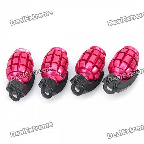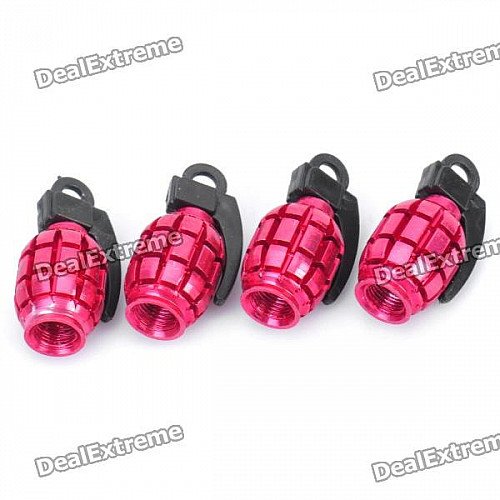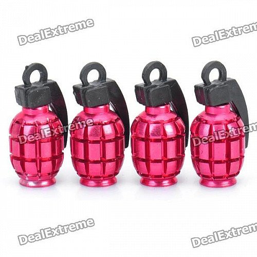 Cool Grenade Shaped Car Tire Valve Caps - Deep Pink (4-Piece Pack)
