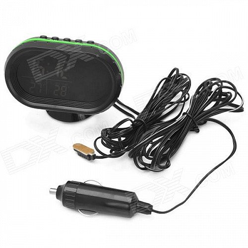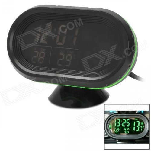 G1 2.5" LCD Electronic Car Voltage Meter / Thermometer w/ Clock - Black + Green