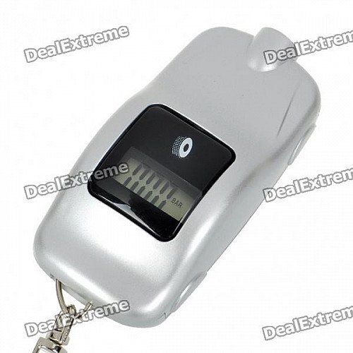 Mini Car Shaped 0.6" LCD Digital Tire Pressure Gauge Keychain - Silver (1*CR2032)