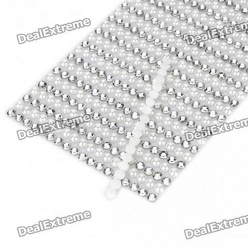 Charming DIY Crystal + Pearl Sticker for Car/Cell Phone/Camera - Silver + White (792 Piece/Sheet)