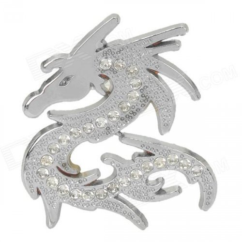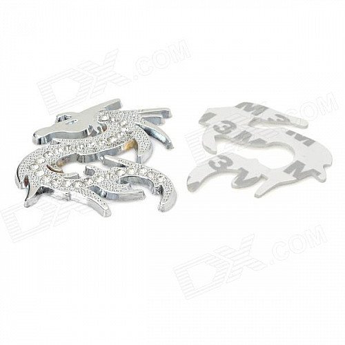 CYS003 DIY Cool 3D Dragon Shape Metal Rhinestone Car Decoration Sticker - Silver
