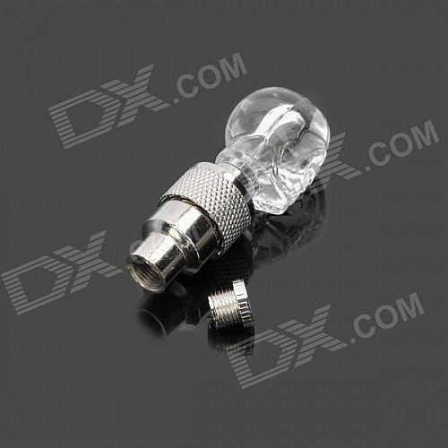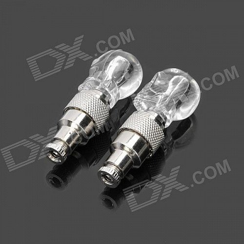 Flashing Colorful Light Skull Style Car Tire Valve Caps - Transparent + Silver (2-Pack)