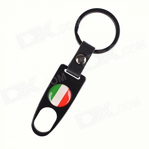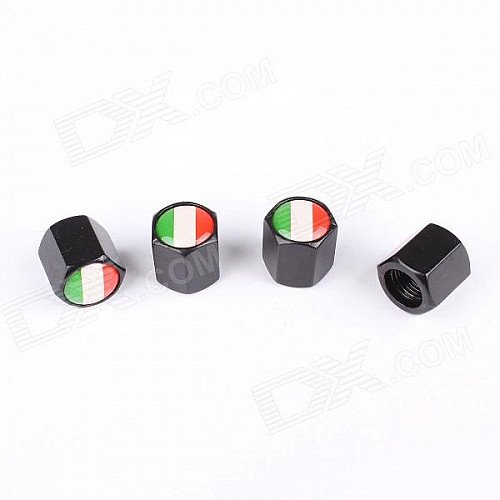 Italy Flag Replacement Aluminum Alloy Car Tire Valve Caps + Key Ring Set - Black (4 PCS)