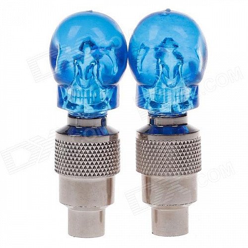 Skull Head Decorative Blue Light Bike / Car Wheel Tire Valve Caps Lamps - Silver (3 x L1131 / 2 PCS)