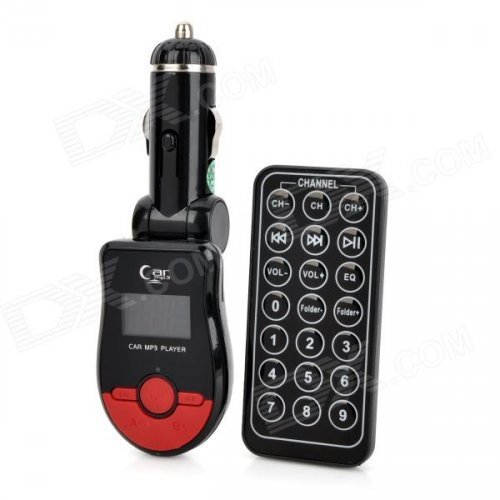 FM101 1" LCD Car MP3 Player FM Transmitter with Remote Controller - Black + Red (12V)