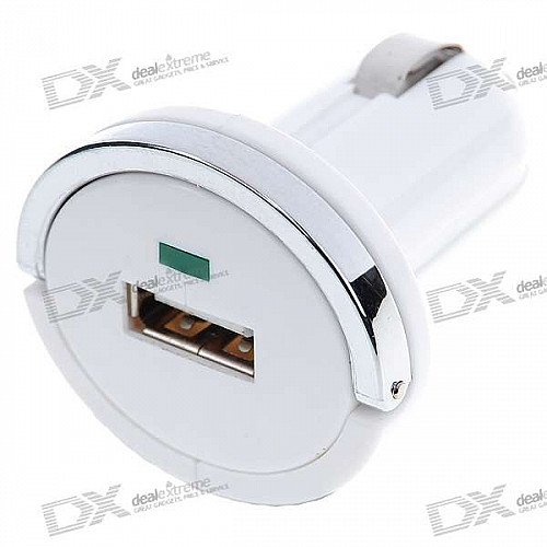 1000mA Car Cigarette Powered USB Adapter/Charger - White (DC 12V/24V)