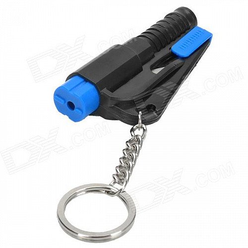 3-in-1 Safety Hammer + Seat Belt Cutter + Whistle Keychain - Black + Blue