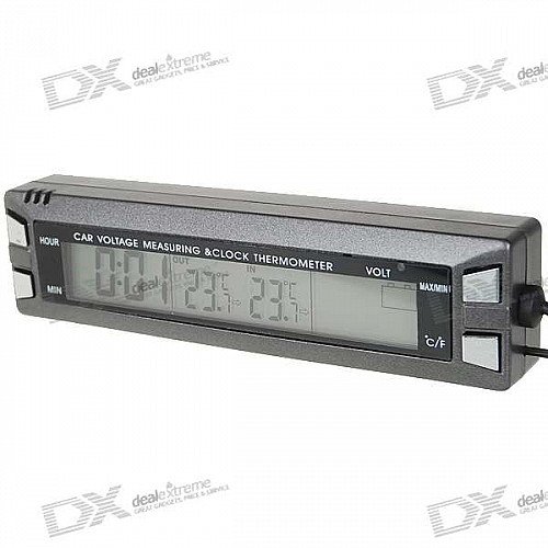 3.8" LCD Digital Clock with In/Outside Thermometer + Voltage Measuring Bar for Vehicles